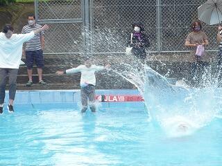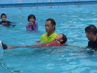服を着たまま水に飛び込むこつやペットボトルに少し水を入れて投げるとコントロールよく投げられること、背浮きの仕方等を教えていただきました。