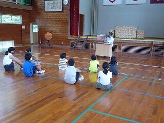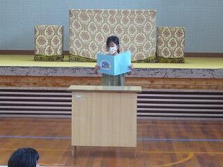 3年児童が1学期を振り返ってがんばったことや思い出を立派に発表しました。校長は児童のがんばりを認め平和教育の読み聞かせを行い、生徒指導主事が夏休みの安全面の諸注意を話しました。明日からの夏休み、自立ある生活を心がけ楽しい夏休みにしてほしいです。