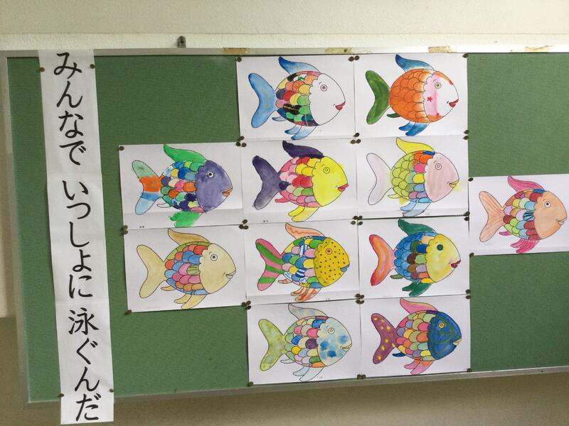 先日は、有名なゴッホの「ひまわり」を自分なりに模写したり、各々の色彩感覚を生かした魚や虹を描いたりしました。よろしかったら感想をお寄せください。