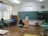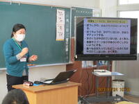 今日は、業間の時間を利用して給食感謝集会が実施されました。細田共同調理場から栄養教諭の河野先生に来校してお話をしていただきました。調理員さんへのインタビュー動画を通して、たくさんの支えがあって給食ができていることを学びました。