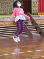 練習では、普通跳びを最後まであきらめずに跳んだり、二重跳びや後ろ交差跳びなど得意な跳び方を披露したり、引っかかっても、みんな一生懸命頑張っていました。