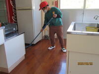 広い空間を少人数で掃除しなければならず、各分担場所を責任もってきれいにするように心掛けました。