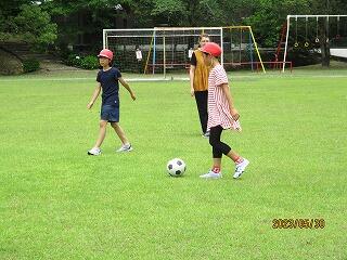 子ども達は、昼休みにALTのアビゲイル先生と4.5年担任の先生と一緒にミニサッカーで遊んでいました。長年使用してきた運動場のサッカーゴールが、錆や腐食のため後日撤去されることになり、使用禁止となったのです。サッカー大好きな子ども達にとっては、物足りない大きさかもしれませんが、元気いっぱい遊んでいました。