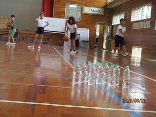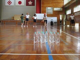 今日は雨です。昼休み体育館でサッカーをした後に、先生が少し水を入れたペットボトルを持って来ました。ペットボトルを並べ、即席ボーリングの完成です。梅雨の時期はもちろん、夏に運動場での活動が厳しい時は体育館で過ごします。遊びのバリエーションが一つ増えましたね。
