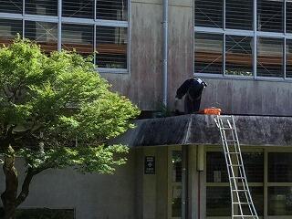 今日は、突然雨が降ったり、日差しが強くなったり、とにかく蒸し暑い1日でした。それでも、黙々と環境整備員さん達は作業を続けられていました。体育館正面の屋根の雑草も伸び放題でしたが、きれいに除草してくださいました。他の場所も細かい所まで丁寧に整備していただき、学校がとってもすっきりきれいになりました。4日間、本当にありがとうございました。