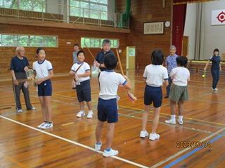 今日は雨のため、剣棒踊りの練習は体育館で行いました。