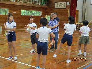 今回は、少しフォーメーションを変えての練習でした。剣棒踊りは、ひとり一人が違う動きなので、自分の立ち位置が変わると難しいようです。保存会の方も毎回指導に来てくださり、本当にありがとうございます。