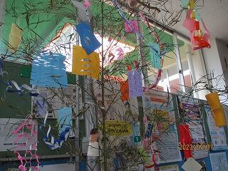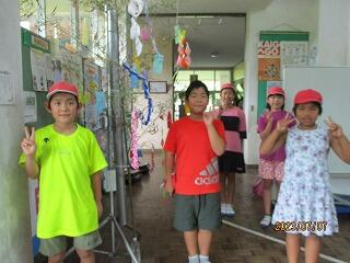 今日は七夕ですね。先日、地域コーディネーターの長友さんが笹の準備をしてくださり、子ども達が飾り付けをしたり、短冊に願い事を書き完成させていました。今日は、雨が降ったり、晴れたり不安定な天気です。織り姫と彦星は会えるのでしょうか?