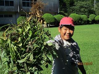 昼休みに学校農園のお世話をしてくださっている田中さんと芋掘りをしました。子ども達はとても喜び、「焼き芋、味噌汁、天ぷら、サラダ、デザートも出来る!」など、サツマイモ料理の話で盛り上がっていました。