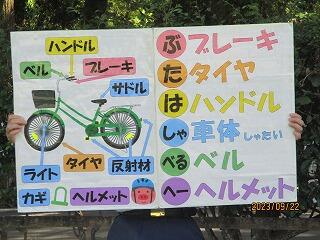 次は、自転車の点検と乗り方です。点検の合い言葉「ぶ・た・は・しゃ・べる・へー」