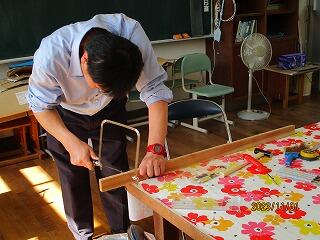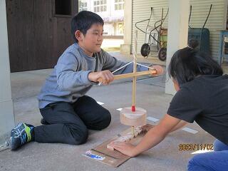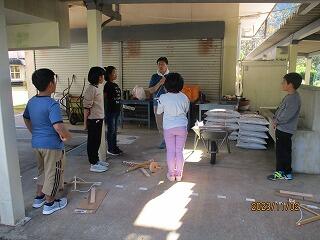 火起こし器も試行錯誤しながら、先生が作っていました。円柱の部分は、保護者で大工さんをされている方が作ってくださいました。