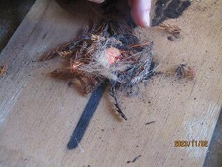 火事にならないよう、細心の注意を払いながら行いました。山下先生が見本を見せてくれたのですが、いざやってみると火起こし器を上下に動かすことすら難しく、なかなか火種が出来ません。しかし粘り強くやっているうちに、段々とコツをつかみ、いくつか火種を作ることが出来るようになりました。しかし残念ながら、火を起こすことは出来ませんでした。活動を通して、改めて昔の人の苦労を知りました。(後日、またチャレンジします!)