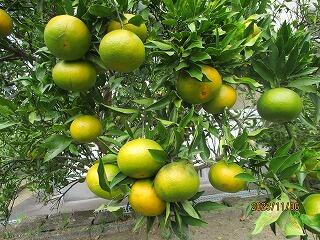 4月に中庭に植えた柑橘系の実がたわわに実ってきました。収穫するのが楽しみです。
