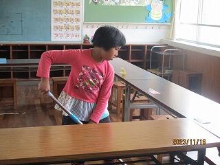 4年生2人は、いつもより清掃を早めに取りかかり、5年生の分まで頑張ってきれいにしていました。