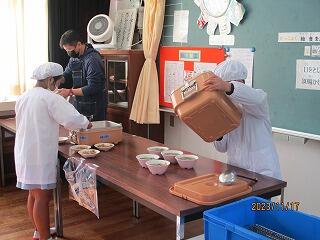 修学旅行の間、4年生2名は、旗揚げ・降ろし、放送、給食配膳等を頑張っていましたよ。