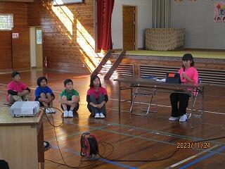 次に、校長先生のお話は、10月27日~29日に開催された「宮崎県人会世界大会」についてでした。今回、宮崎県人会世界大会が行われた目的や交流内容などを紹介していただきました。