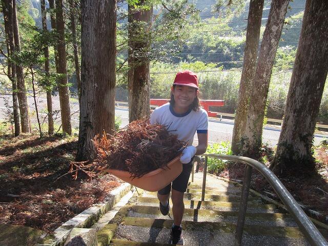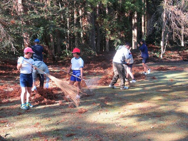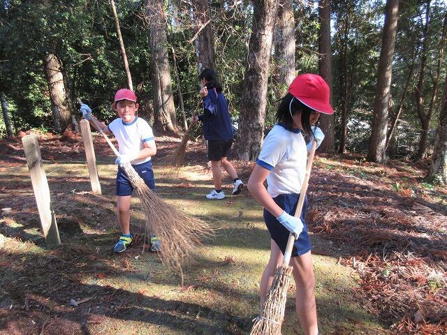 11月20日(月)の5~6校時に4校合同(大堂津小・大窪小・細田小・細田中)ボランティア活動が行われました。本校は、細田中学校2年生2名(本校卒業生)と一緒に大窪神社清掃を行いました。宮司さんから、神社に入るときの作法や神社の鈴を鳴らす理由などを教えていただいた後、全員で境内清掃をし、次に各々の清掃場所に取りかかりました。落雷で杉の木が2本枯れてしまった影響か、枯れた杉の葉が絨毯のように地面に落ちていました。清掃後は、見違えるほどきれいになり宮司さんにも喜んでいただきました。帰りに、日本の年中行事が書かれたクリアファイルをいただき、おみくじを引いて、すがすがしい気持ちで帰校しました。22日、23日に当神社で実施される例大祭で、地域の人もたくさん訪れられることでしょう。少しでもお役に立てて良かったです。