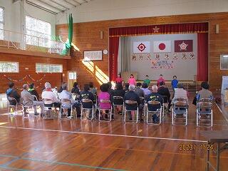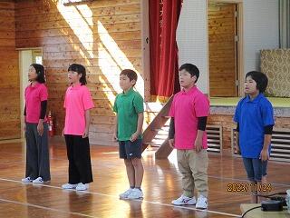 まずは、毎年恒例のグランドゴルフ大会から始まりました。中庭や運動場にコースを作り、児童・保護者・職員・地域の方々と一緒に楽しみました。その後、体育館へ移動し、学習発表会を実施しました。最初に、「ゆかいに歩けば」「ハロー・シャイニングブルー」の合唱。次に、総合的な学習の時間の発表(美々鯵の魅力体験について)を行いました。最後は、リズムダンス「夜に駆ける」「YMCA」を披露しました。
