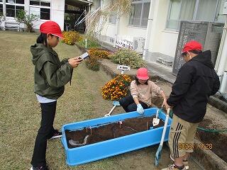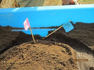 5年生は理科で「流れる水のはたらき」を勉強しています。今日は、流れる水には、石や土などにどのような働きをするのかの実験を行っていました。曲がっているところでは、外側が削られ(浸食)、内側に積もる(たい積)ことが分かったようです。