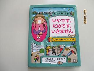 次に「いやです、だめです、いきません」の絵本の読み聞かせをしていただきました。子ども達自身が自分の身を守るための内容でした。「あぶない人って、どんな人?」「あぶない場所って、どんなとこ?」「知らない人が突然現れたらどうする?」などと子ども達に問いかけながら、読んでいただきました。
