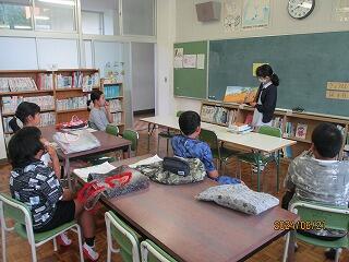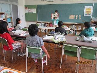 朝の時間は、図書司書の多田先生による読み聞かせと本の紹介でした。