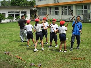 今日から剣棒踊りの練習が始まりました。剣棒踊りとは、大窪の寺村地区に伝わる伝統芸能です。今日は、保存会の方が5名指導に来てくださいました。最初は踊りの動きを忘れている部分もあり、保存会の方に教わりながら、一通り踊ることが出来ました。練習を積み重ね上達した姿を、運動会などで披露できるよう頑張ります。
