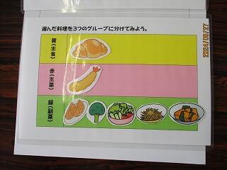 宿泊学習の食事はバイキング形式となります。まずは、模擬バイキングに挑戦しました。子ども達は、好きな物を思いのまま選び、その後「主食」「主菜」「副菜」に分けていきました。その結果、栄養のバランスにずいぶん偏りがありました。宿泊学習は食事も勉強の一つです。