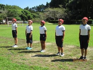 運動会前の集団行動の練習が始まりました。行進や方向転換、足踏みなど基本的な動きの練習をしたようです。久しぶりの運動場での体育は、暑かったようですが、子ども達はいい汗をかき笑顔で教室へ戻っていきました。