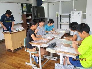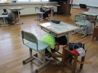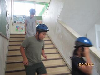 朝の時間は、地震を想定した避難訓練でした。今回は、子ども達の判断で放送の指示に従い、落ち着いて避難をしていました。生徒指導の先生から、事前に「家で自然災害が起き、家族が一緒でなかった場合の集合場所の確認」と「今回の地震や台風を経験し、改めて準備した物」を調べるよう伝えてあり、発表し合いました。その後、災害時の合い言葉「おはしもち」の確認や登下校中の危険な場所の確認を行いました。