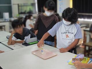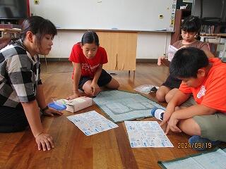 算数は、分数の分母と分子を 同じ数で割る約分の勉強をしました。理科では「重曹と酢を混ぜたら?」の小実験と紙飛行機作りをしました。道徳は、本校の先生が授業を行いました。