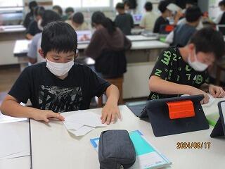 5年生は、①算数(分数) ②理科(小実験+紙飛行機作り) ③道徳(題材「流行おくれ」)でした。