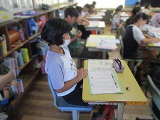 本校は、修学旅行と宿泊学習は、細田地区の大堂津小学校と細田小学校の3校合同で実施しています。今年度は9月に宿泊学習があり、本校は5.6年生5名全員参加します。今日は、宿泊学習のしおりに沿って一つひとつ確認をしていきました。様々な活動を通して、集団生活の楽しさを学んできてほしいです。