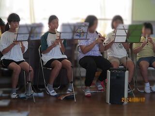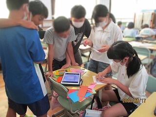 音楽は、「L-O-V-E」の合奏と「ぼくらの日々」の合唱をしました。小規模校では体験することの出来ない、大人数でのきれいな音色が響いていました。図工は、廊下や階段などの奥行きを使い、作品の製作していました。