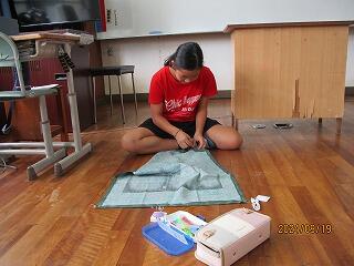 1校時、6年生は家庭科でエプロン作りをしていました。エプロンの布は、3名おそろいの柄を選んだようです。出来上がりが楽しみですね。