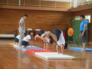 今日から、体育振興指導教員による体育の授業が7時間ほど行われます。本校には、宮崎北高校の図師先生が来校されました。現在も体操教室で指導をされているそうです。