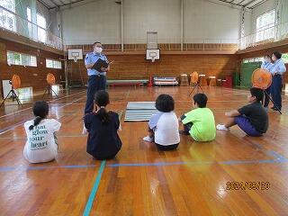 子ども達は「どんな先生が来るんだろう?」と朝からドキドキしていましたが、すぐに緊張がほぐれ楽しそうに授業を受けていました。今日は、マット運動の基礎(だるまの起き上がり、ゆりかご、壁倒立など)を行いました。技をきれいに見せるには、柔軟性が必要になってくるそうです。次回は、前転や後転、トランポリンをする予定です。図師先生、来週もよろしくお願いいたします。