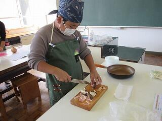 今日は5年生が、5~6校時の家庭科の時間に調理実習を行いました。「ごはんとみそ汁」を作りました。みそ汁の具は、大根・ネギ・油揚げの予定でしたが、昼休みに収穫した学校の椎茸も入れ、具だくさんのみそ汁となりました。2人とも時々家で料理の手伝いをするので、野菜切りも上手で、洗い物も協力し合いながら行っていました。自分達で作ったごはんとみそ汁は、おかわりをするほど美味しかったようです