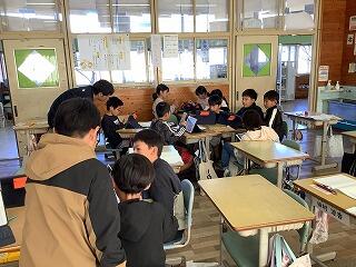一人でやる児童、グループでやる児童、先生に聞く児童がおり、学習課題の難易度も基礎的なものから発展的なものまで、それぞれが選べるようになっています。
