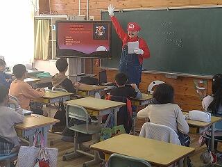 ALTの先生が、マリオの格好をして、ハロウィンについて授業していました。