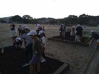 先日の昼休みに4年生が花壇の整備をしていました。