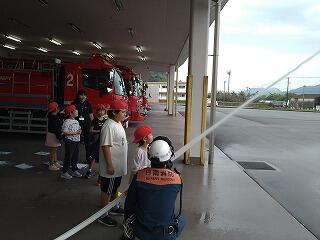 家庭科室での火災を想定して行いましたが、全校児童は真剣に訓練に取り組んでいました。