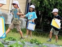 本日の2年生の生活科では、育てているサツマイモやミニトマトの様子を観察です。1年生は、みんなで行く近くの遊び場には何があるかを出し合っています。