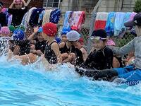 本日の3年生の体育は、水泳の学習です。いろいろな浮く、もぐるを楽しんでいます。中には、3年生になって初めて、水に顔をつけることができた子もいました。