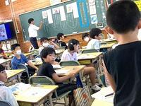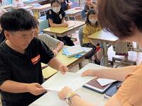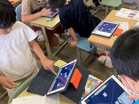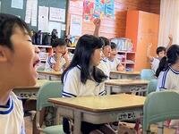 本日の6年生の外国語では、夏休みの出来事をたずね合っています。4年生の外国語活動では、文房具の名前を学んでいます。