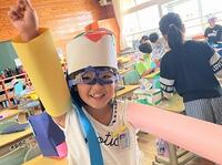 本日の2年生の図工では、わにかざりをつけて、へんしんするものを作りました。みんな素敵に変身できました。