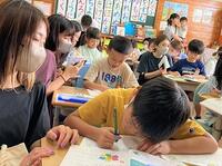 本日の朝の「スキルタイム」では、お兄ちゃん先生が大活躍です。2年生の図工では、卵から生まれる世界を楽しく表しています。6年生の理科では、食べ物の元をたどって行き着く生物は何かを話し合っています。