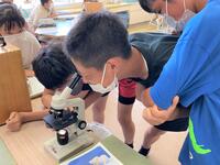 本日の6年生の理科では、池や川で見られる小さな生物の観察中です。算数では、学びの確かめ中です。5年生は、算数「合同な図形」のテスト中です。