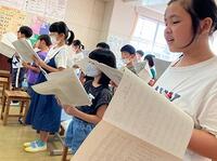 1学期最後の給食は「なつやさいカレー」です。「フルーツジュレ」もついていました。6年生の総合では、「日南元気プロジェクト」の発表です。社会科では、がんばったテストが返されました。