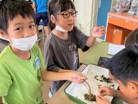 本日の2年生の算数では、ひき算のひっ算に取り組んでいます。3年生の理科では、昆虫のすみか探しです。5年生の家庭科では、地域ボランティアの方と一緒に「エプロン作り」に挑戦中です。