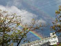 本日の朝の登校時間には、ダブルレインボー(二つの虹が同時に架かる現象)を見ることができました。目撃した人には幸運が訪れるとか・・・
